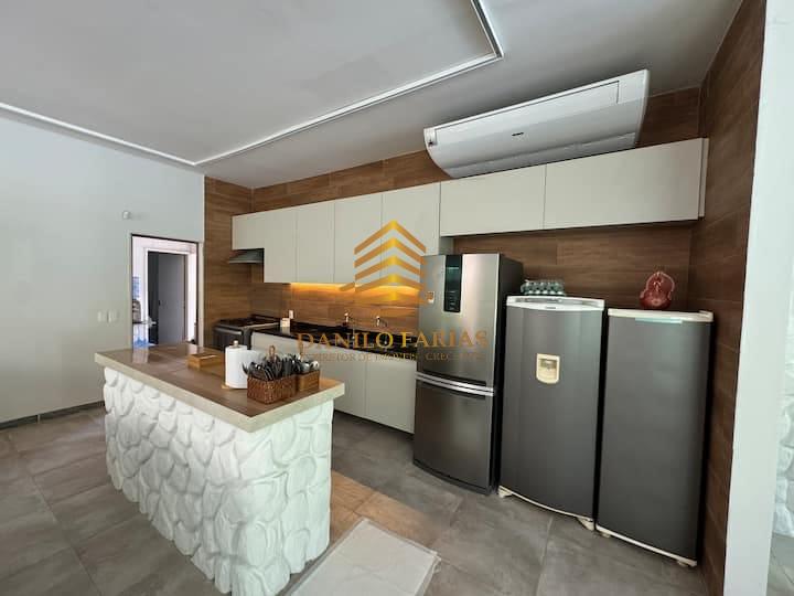 Casa beira rio, com deck, piscina, ar condicionado na sala e em todos os quartos