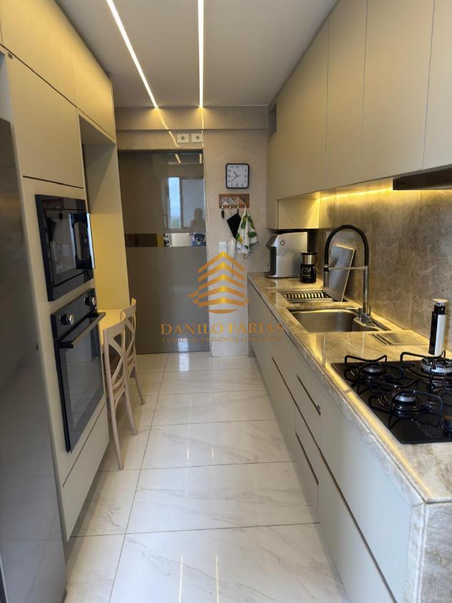 Apartamento com 89m2, sala 2 ambientes ampla bem iluminada e ventilada, 3 quartos sendo 1 suíte, cozinha espaçosa, área de serviço, WC social e de serviço, 2 vagas de garagem cobertas